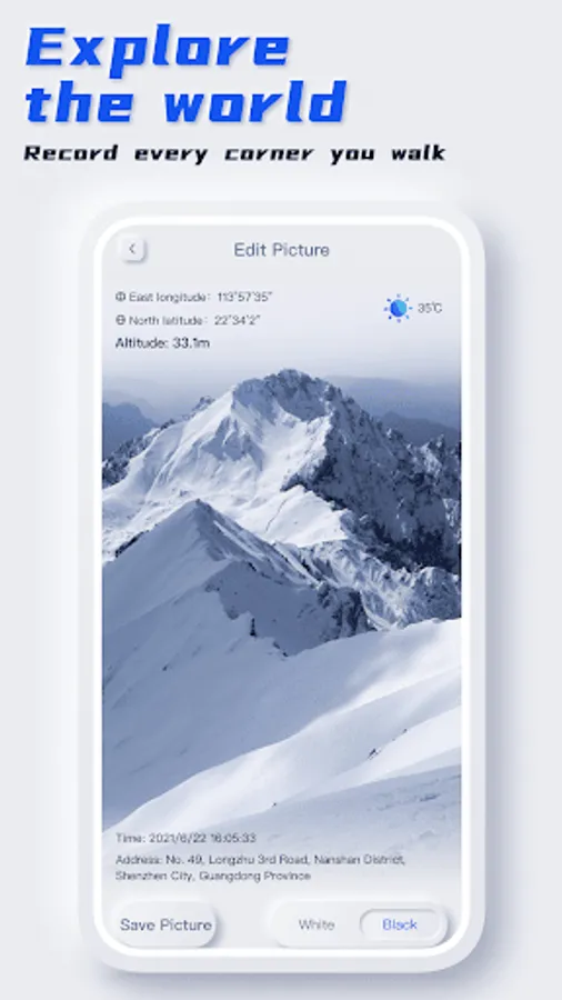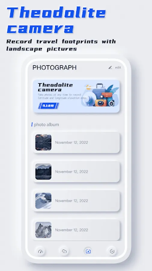 3. Latitude and longitude camera: take photos and add longitude and latitude, altitude, temperature, location, time and other information of the current position to record every trip
