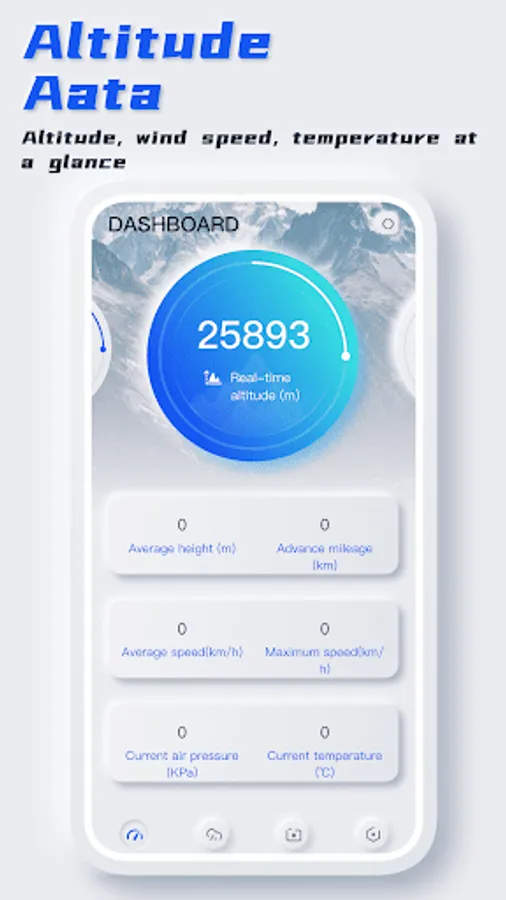 1. Dashboard: measure the altitude of the location in real time, record the mileage, average speed and other data to help you adjust the climbing speed