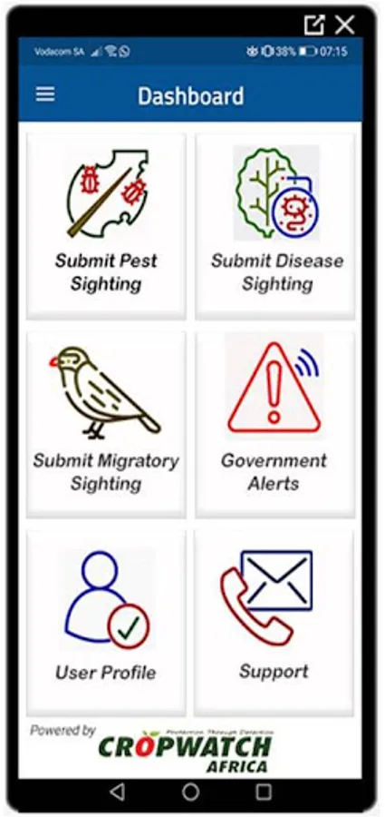 aspects of Biosecurity within Africa. The application is linked to a web dashboard for the display of collected data and reporting.