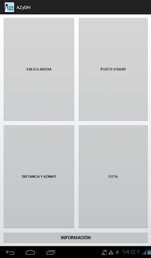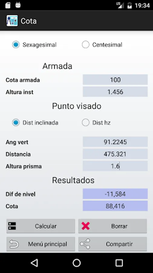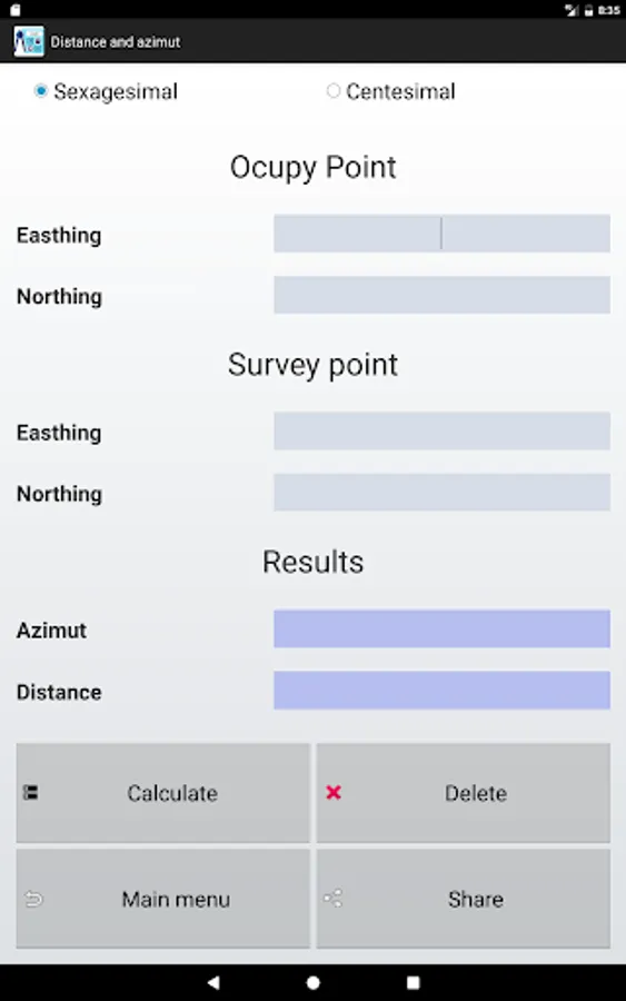 AZ & DH, Azimuth and Distance is an application designed to support topografos and / or engineers, which includes a basic calculator with trigonometric functions and transformation between different angle units; It provides a practical tool to calculate the plane coordinates of a point from another known using the range and azimuth between them; a tool to calculate the distance and azimuth between two points from the north and east coordinates of these points; and a tool for calculating trigonometric elevation of a point from another known; It also provides the option to share data calculated through the various tools available on your mobile device and the option to use angles grads and sexagesimal.