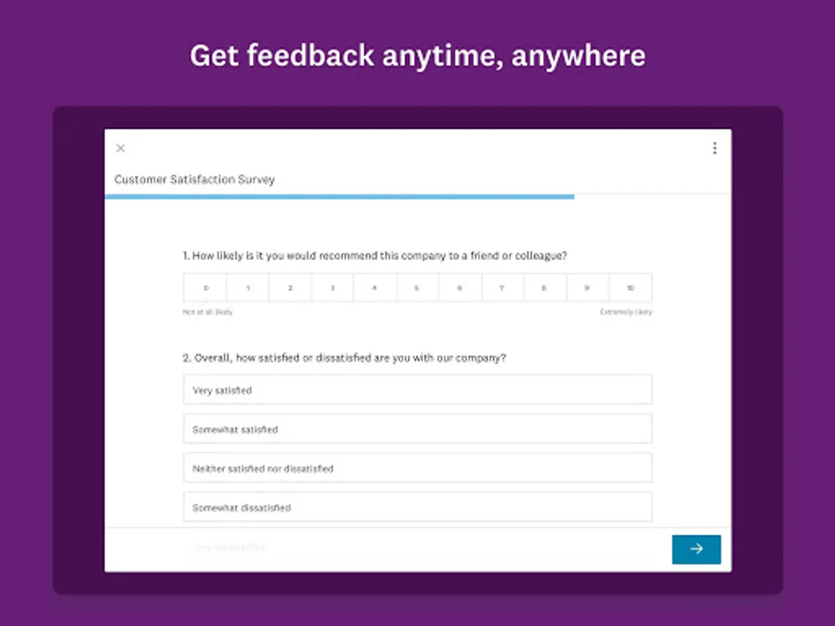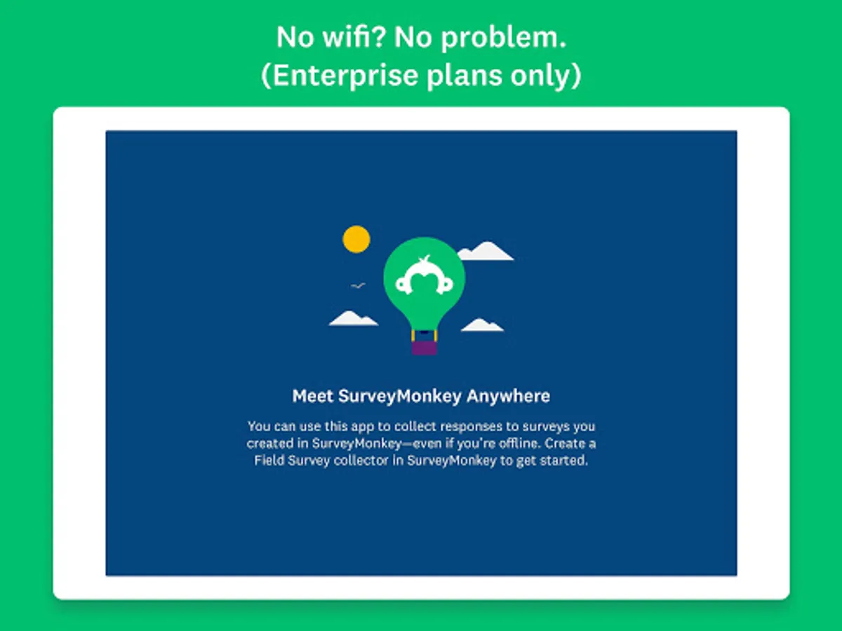 SurveyMonkey is trusted by more than 58 million users, including 99% of the Fortune 500. Power your curiosity with SurveyMonkey Anywhere - wherever, whenever, however. The SurveyMonkey Anywhere app is free to download and use. Kiosk Mode is available to all SurveyMonkey users for free. Paid users get access to even more powerful features such as the auto-restart timer and passcodes for kiosk surveys. Offline Mode is only available for the paid Enterprise plan at this time.