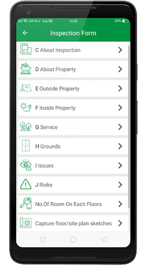 To capture your inspection data, you simply select from available options or input free text to describe your observation. You can type in additional inspection notes or observation not covered in the option that have been provided in the note section or use google keyboard speech to text facility to achieve the same goal. As part of your inspection, you will produce a floor plan of the property making all relevant notation. The app camera feature allows you to take pictures of your paper floorplan and this is embedded into the generated report. This app makes it possible to store your complete inspection report electronically thus eliminating the need for storing paper document.