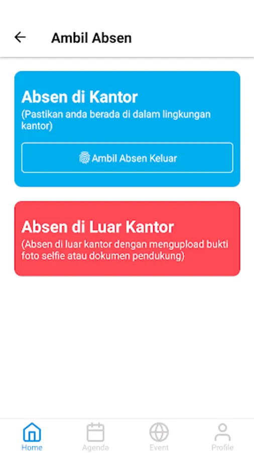 2. Absen dengan mengupload foto selfie dan dokumen pendukung
