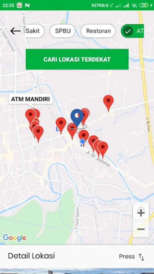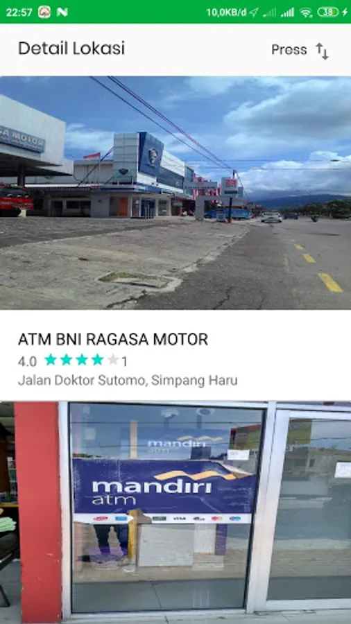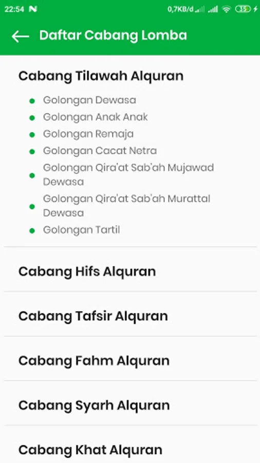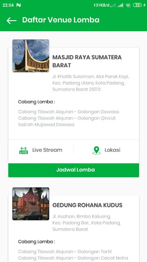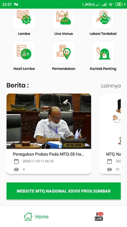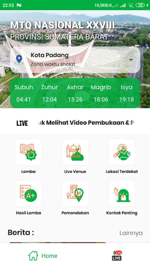 The application contains information about the MTQ competition and public facilities in West Sumatra.