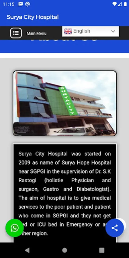 Surya City Hospital was started on 2009 as name of Surya Hope Hospital near SGPGI in the supervision of Dr. S.K Rastogi (holistic Physician and surgeon, Gastro and Diabetologist). The aim of hospital is to give medical services to the poor patient and patient who come in SGPGI and they not get bed or ICU bed in Emergency or any other region.