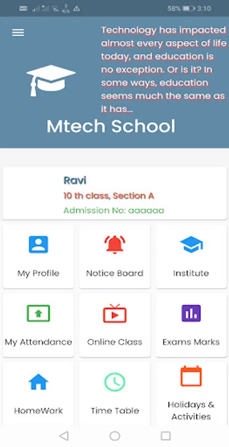· Stay in touch with details of all children ranging from their attendance, academic performance, fees other activities