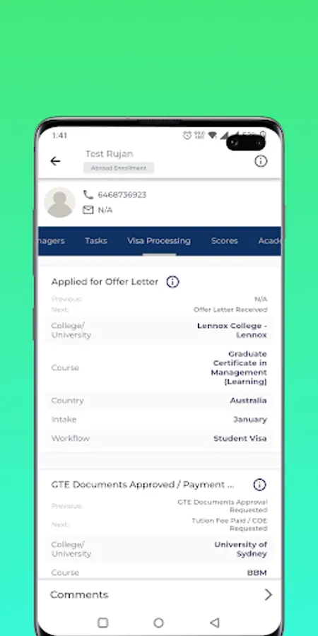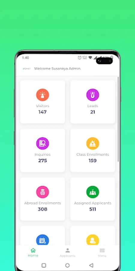 Currently the app supports minimal features. It shows information and data of students, universities, courses, tuition, notifications, chat but modifying and creating further information should be done from the web portal itself.