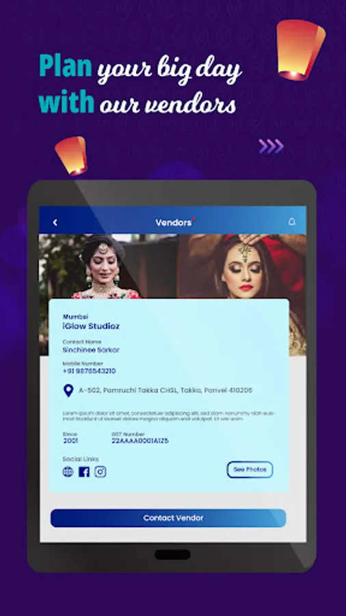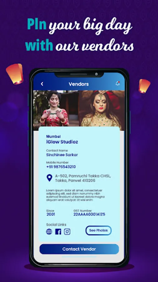 Unique search option: We provide a variety of services to assist the bride or groom in