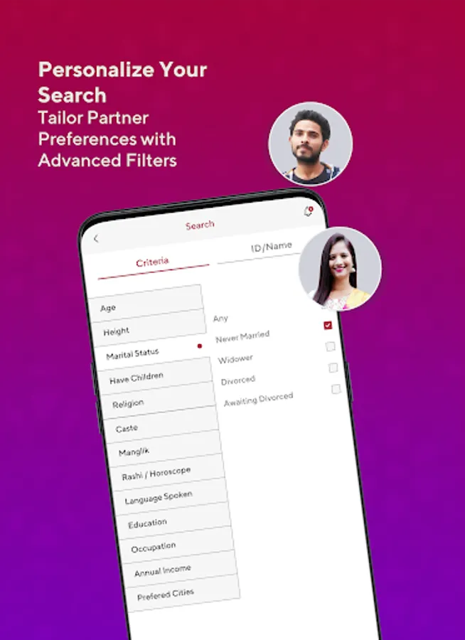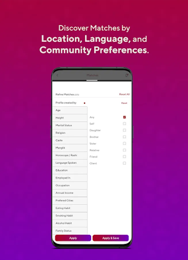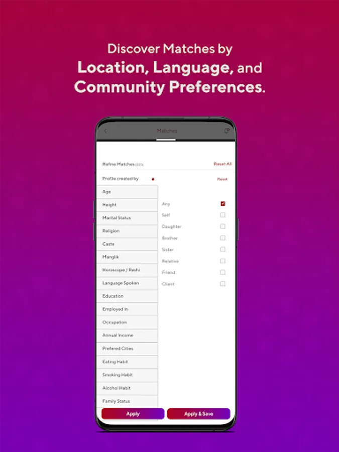 architect, businessman, NRI, etc. profiles that meet your requirements & expectations.