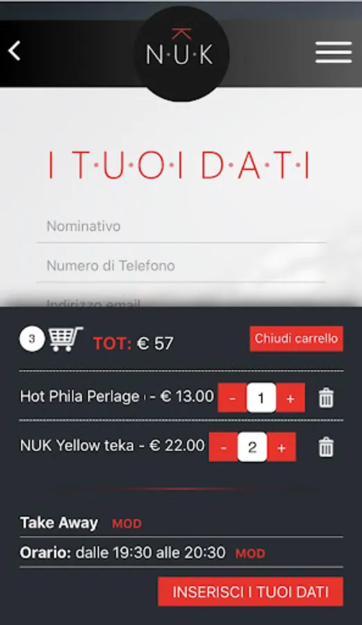 3. Open the shopping cart at the bottom of the page and click on "order now", or on "proceed with the order" at the bottom of the menu.