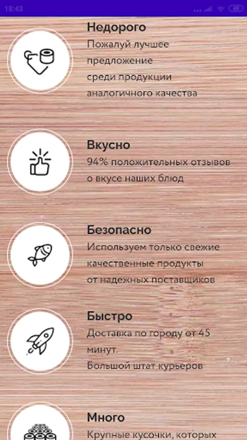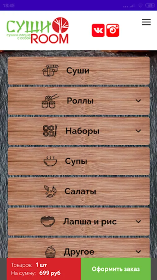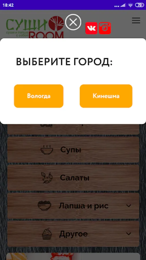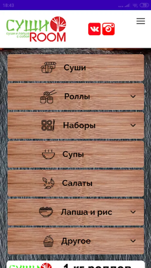 We will promptly deliver the food you ordered to your address within the city. In our store you will always find fresh sushi and rolls, noodles and rice, excellent sets and pizza. And also, for you hot dishes, mouth-watering salads, delicious soups and delicious desserts. You can familiarize yourself with the assortment of dishes of the Sushi Room store in the section of our application.
