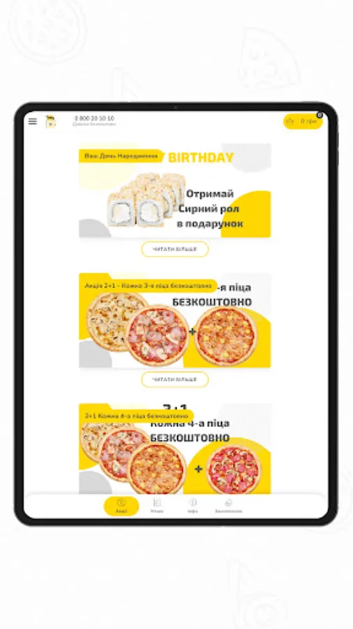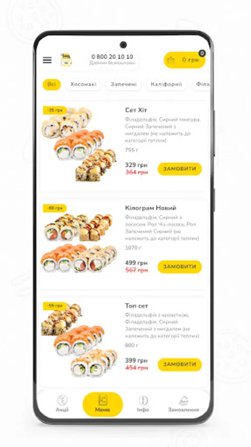 Sushi•Go - more than 50 types of rolls, delicious sushi sets, as well as fragrant pizza according to favorite classic and interesting author's recipes, miso soups, salads, fries and desserts. Order quickly - enjoy! Timely delivery in Lviv and Ivano-Frankivsk.