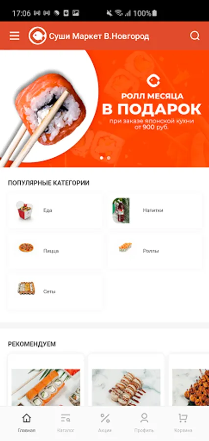 "Sushi-Market" is a chain of Japanese cuisine stores and a real paradise for gourmets and connoisseurs of wholesome food. Our menu has a wide assortment of various sushi and rolls.
