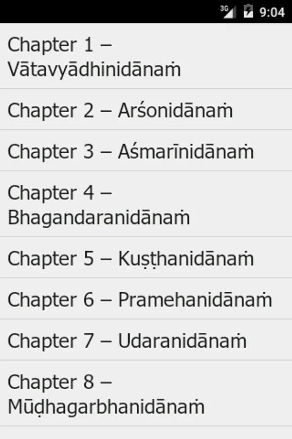 Sushruta Samhita, one of the important classic brihattarayi text of ayurveda attributed to Acharya Sushruta and Acharya Nagarjuna. Nidana Sthana is one of the impoetant part of the this samhita dealing with the diagnostic consideration. With the help of this application one can refresh and gain the knowledge of nidana sthana anytime anywhere.