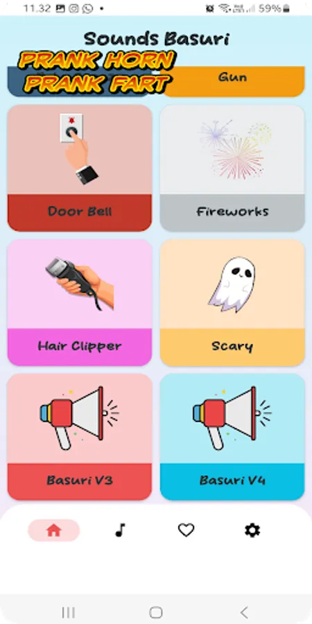 Apart from fart sounds, this application also provides various kinds of horn sounds that you can use to add excitement to various events. Starting from car horns, truck horns, to bus horns, all are available in this application. You can choose a horn that suits your needs, whether it's for signaling on the street, greeting friends with a unique sound, or simply entertaining yourself.