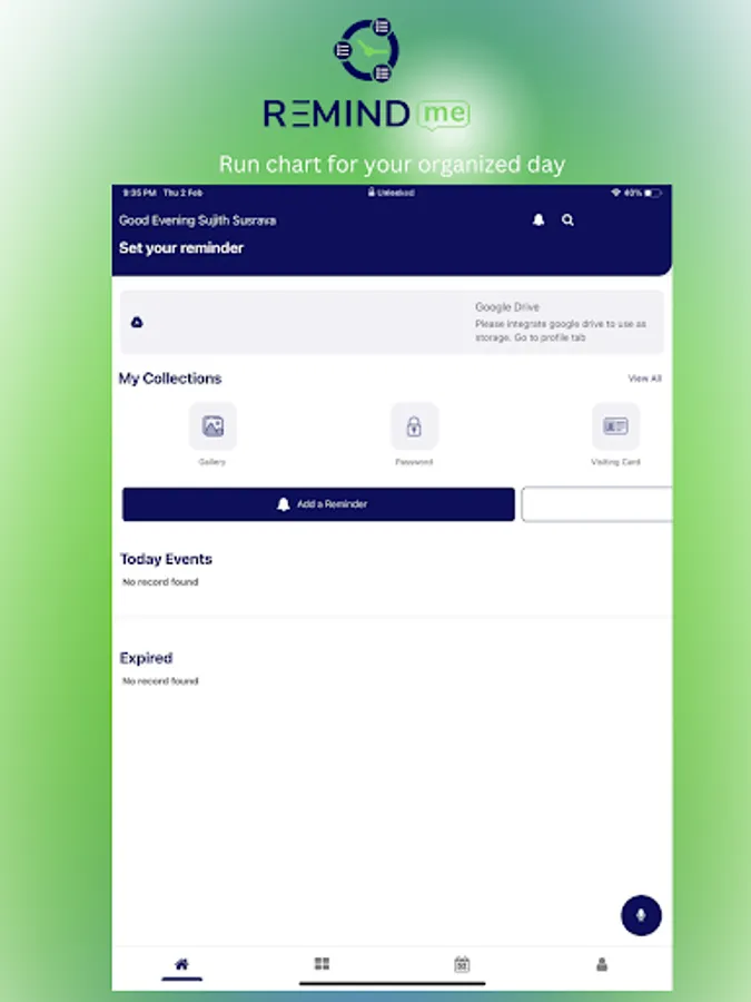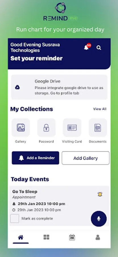 Keep your documents and images in RemindMe App and use it as a single repository. Storage is your own Google drive. So you own the security of your files. You can save your IDs, Mark list, Software licenses, Warranty certificates, Car registration renewal etc for reminding the expiry date.