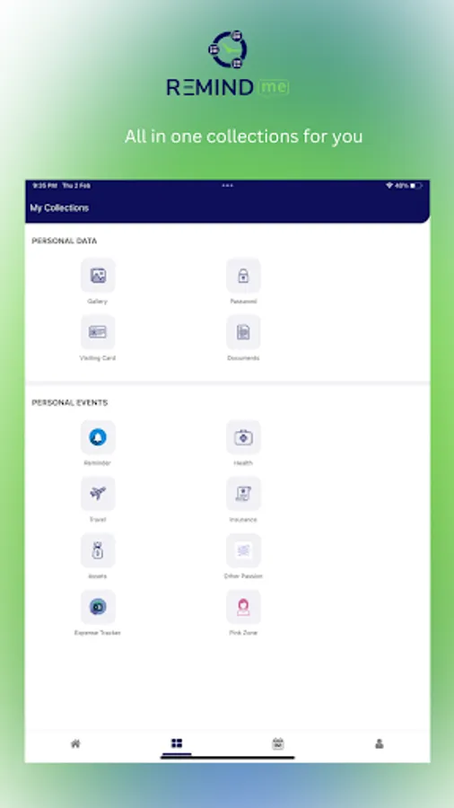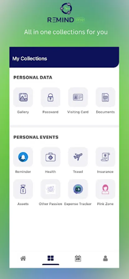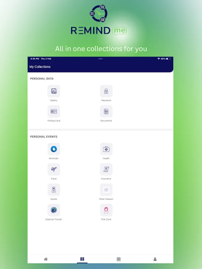 Document expiry, reminder, appointment, tracker, asset management, expense tracker, notifications, health, period tracker, event management, insurance, passions, license, password tracker, policy reminder, organizer, Asset management, Planner, Organizer