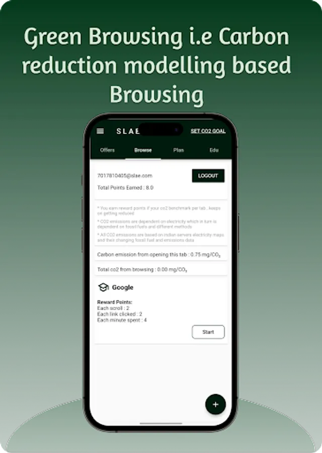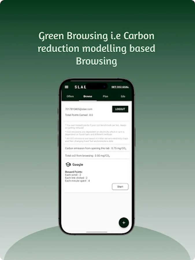 Sustain Live And Earn - SLAE let's you 1)reduce carbon and global warming by green browsing of web sites and SaaS ,