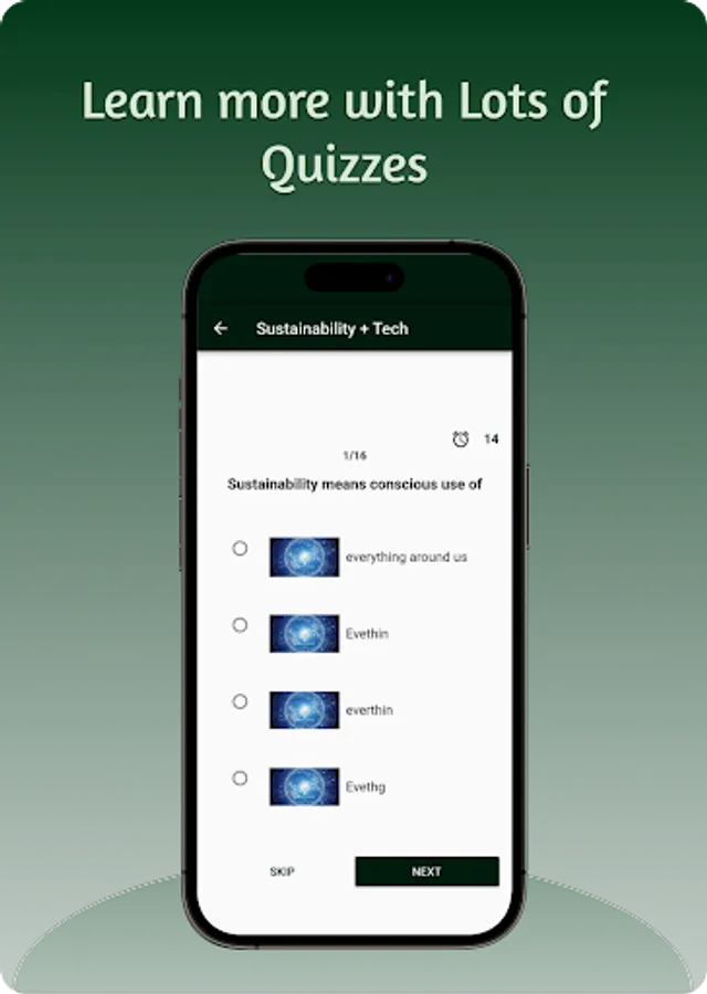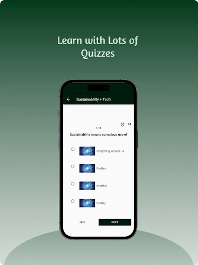 4) learn sustainability through quizzes that are themselves green compressed and hosted for memory retention. (Edu tab)
