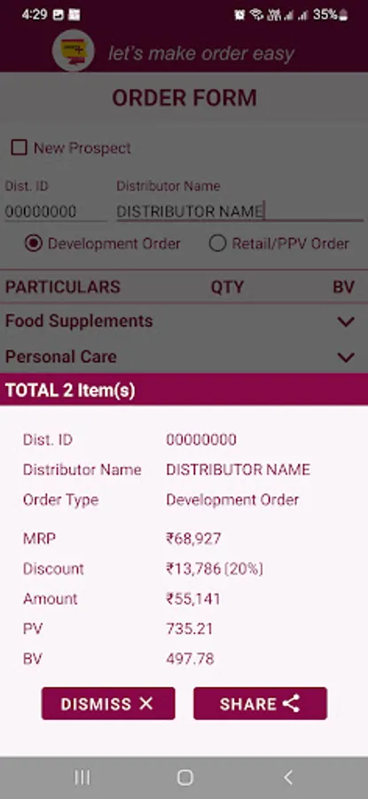 "Order +" is a specifically used to create and share Order of Tiens India Products. It is very user friendly to create and share order instanteniously. It'll have other features as well i.e. Team, Leads and Supplements information and how and when to use supplements.