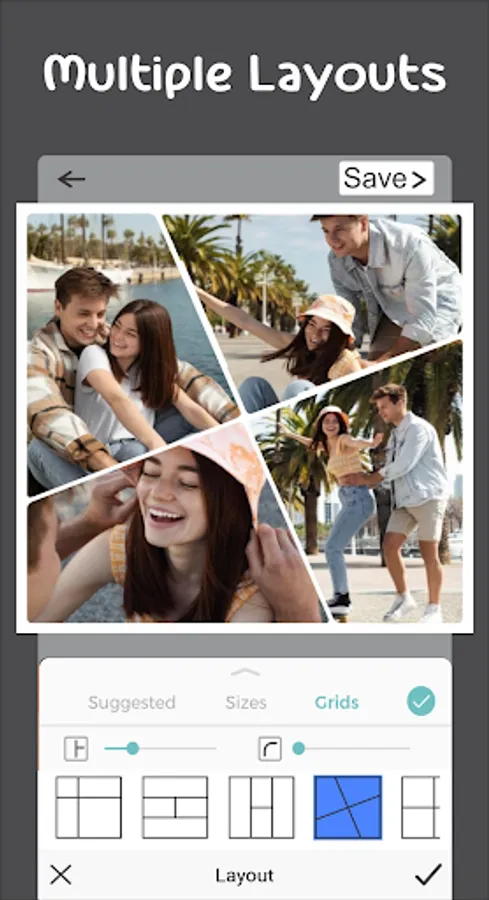 The outstanding feature of Collage Maker - Photo Grid is the ability to combine photos with different layouts. You are free to choose the layout that suits your creative ideas, from simple collages to more complex compositions. With a maximum number of 9 photos, you can create impressive collages and convey messages clearly and creatively.