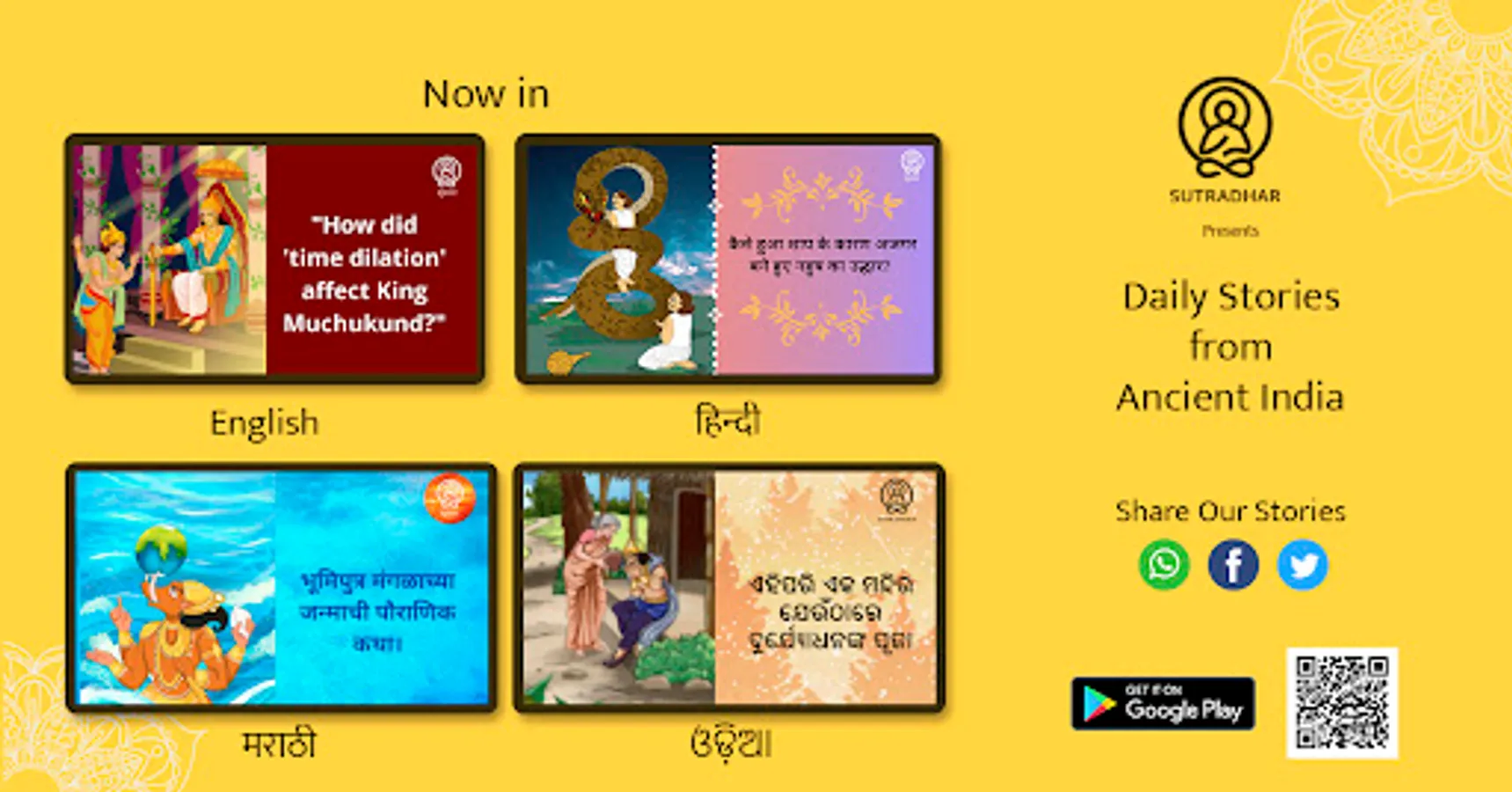 Sutradhar means narrator. India has always had the tradition of narrating and listening to stories. Knowledge of every kind has been collated in the form of these beautiful stories so that it is easy to remember and understand. We are attempting to translate this generations old tradition of Shruti and Smriti for our smartphone generation.