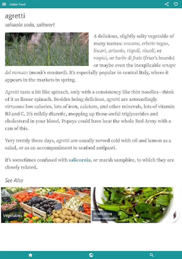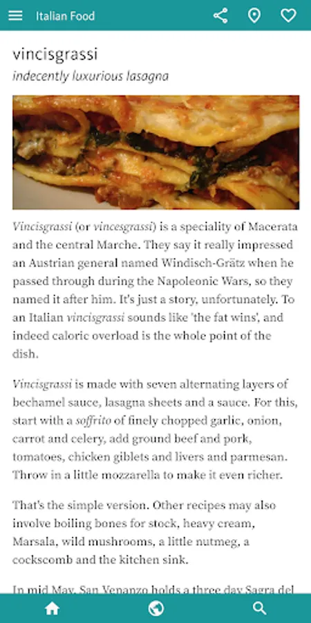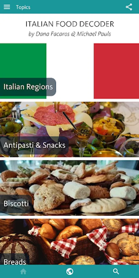 The ITALIAN FOOD DECODER is the perfect companion for exploring the world of Italian cuisine. This app provides instant translations of all the food names, terms and phrases commonly used in cooking. And it's much more than just a dictionary. In-depth entries for all the important words offer background, with descriptions of what's in a dish, where it came from, what goes good with it and who does it best.