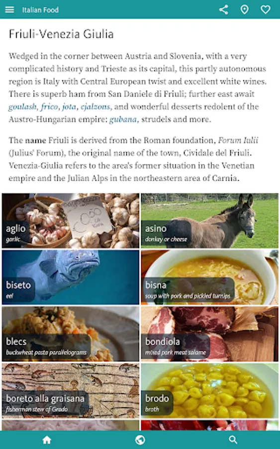 With so many regional styles and specialities, Italian cooking can be awfully mystifying (we've found over twenty words for chanterelle mushrooms), but this app will help you sort out the local peculiarities as well as the hundreds of varieties of cheeses, charcuterie, fish, pasta shapes and the rest.