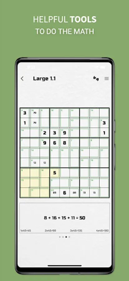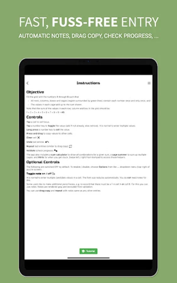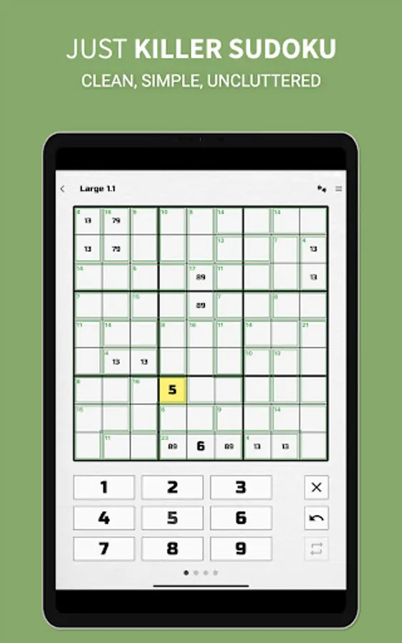 The app has everything you could wish for: gazillions of puzzles at all sizes and levels, automatic notes, drag copy & repeat entries, sum calculator, cage summer, progress validator, and hints.