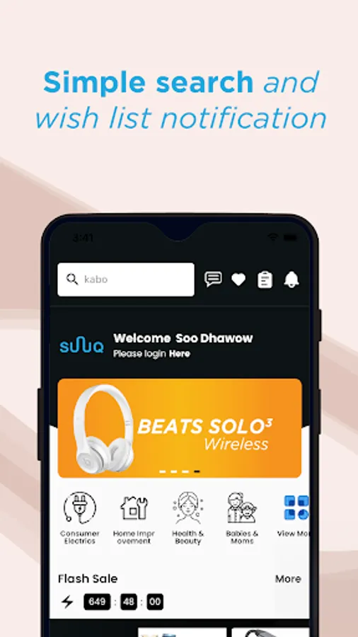 With real-time alerts about offers, auctions, your order changes, and much more sent to your smartphone via tailored notifications, online shopping with the suuqmart app keeps you informed.