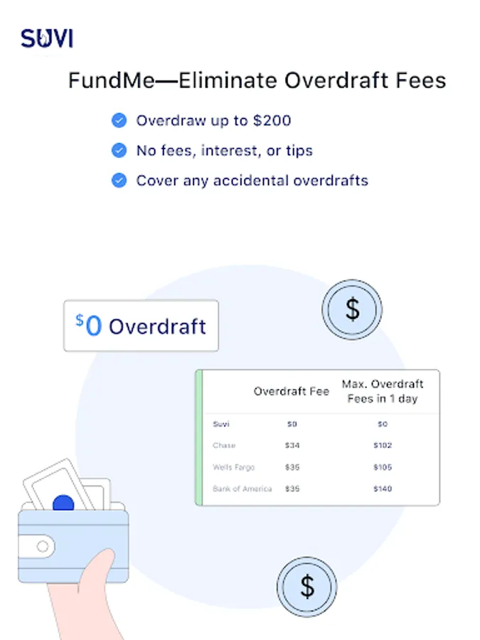 Overdraw without incurring any fees using Suvi’s FundMe**