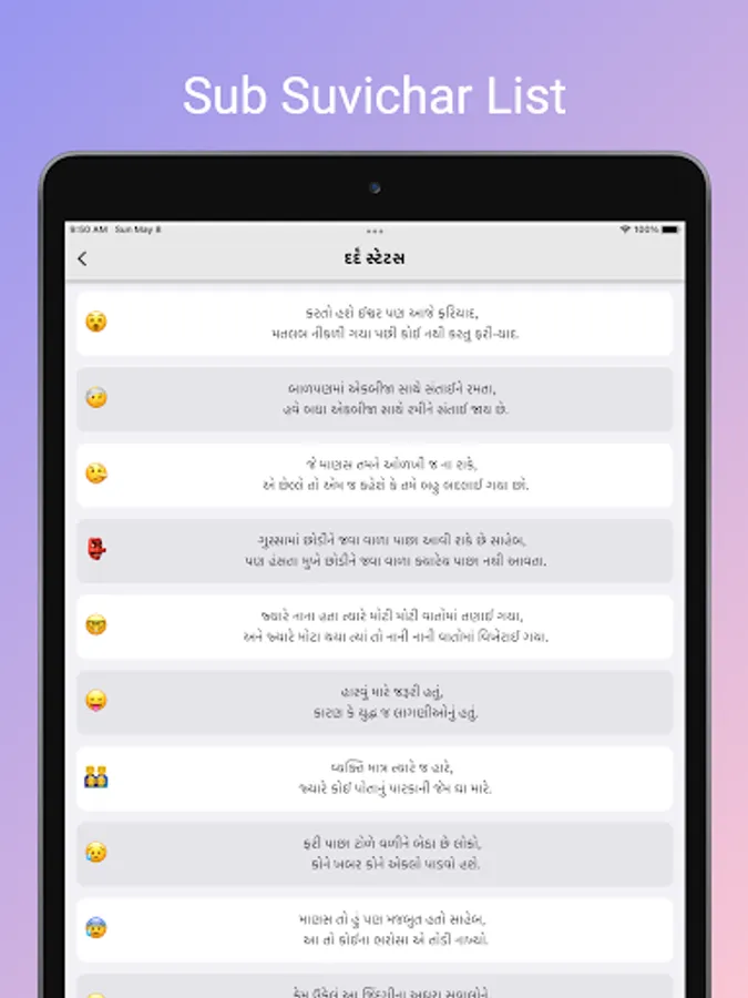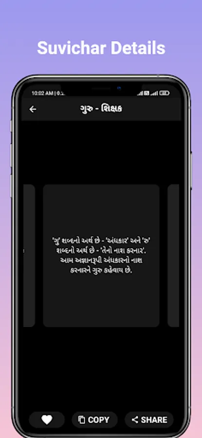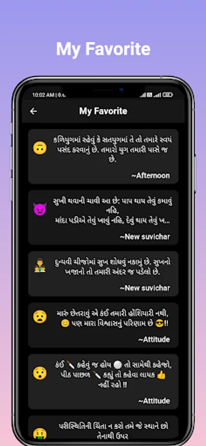 Sometimes self-motivation is mandatory to overcome our desperation. Gujarati Suvichar helps you to show the importance of belonging to life and takes you out of odds. Make your device long-lasting and valuable by installing this application.