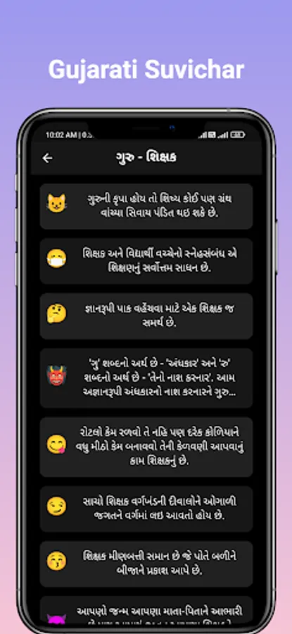 Gujarati Suvichar (ગુજરાતી સુવિચાર) is the best collection of quotes from different category wise quotes like life, good morning, friends, birthday, Motivation, respect, good night, and more category.