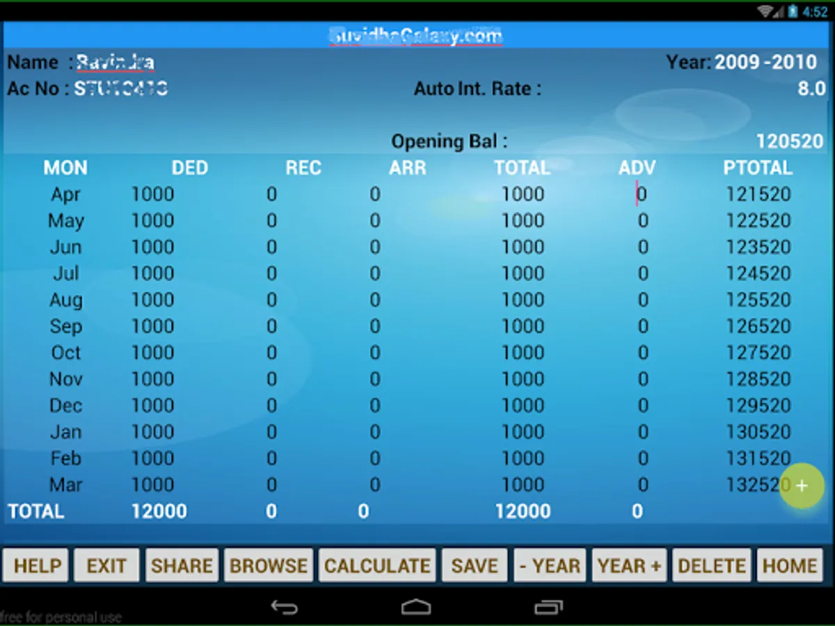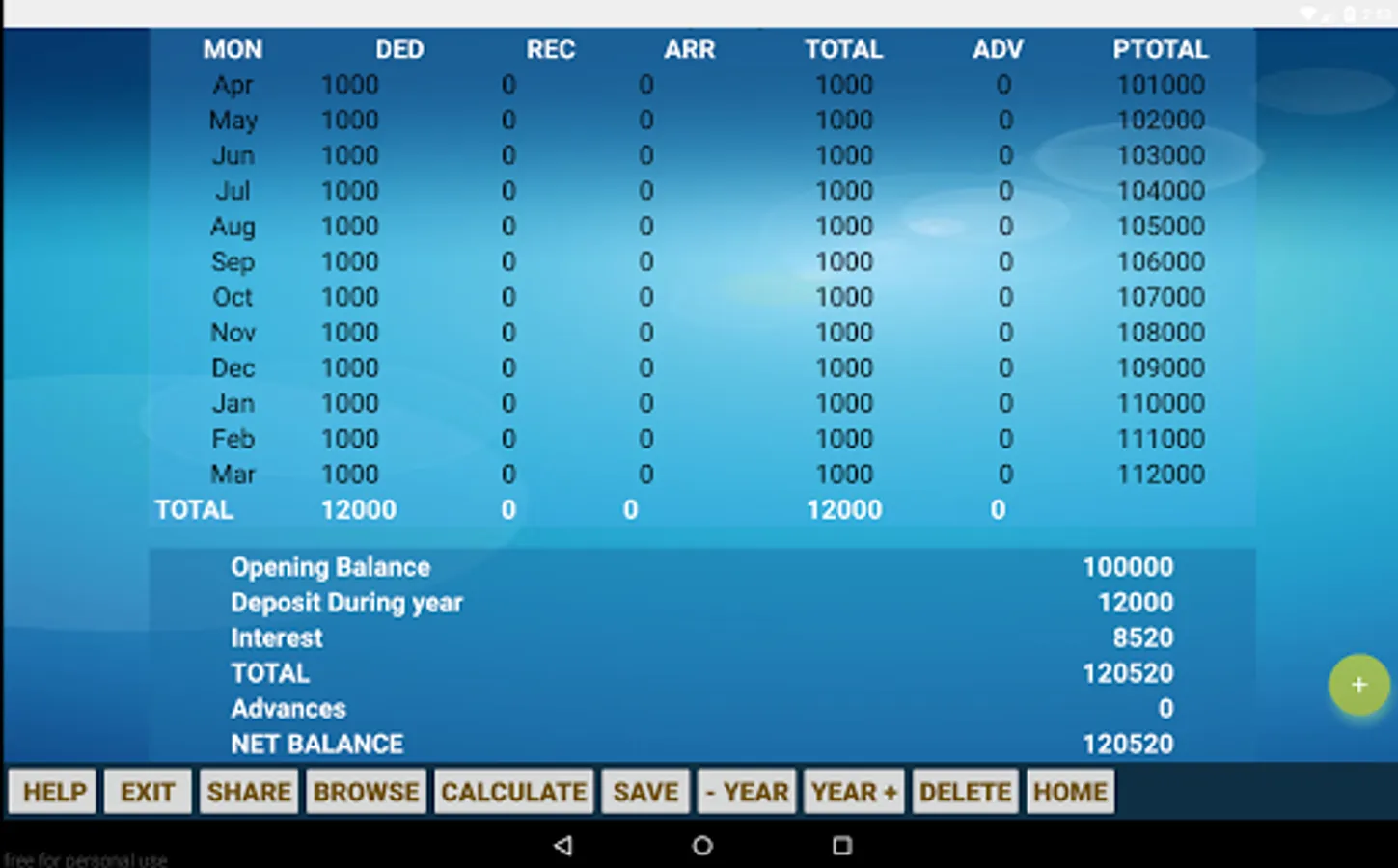 6. By entering just one month record it will update for all 12 months automatically