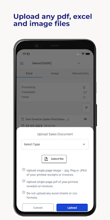 - Users can also upload documents on behalf of their customers whenever they receive them via other communication media