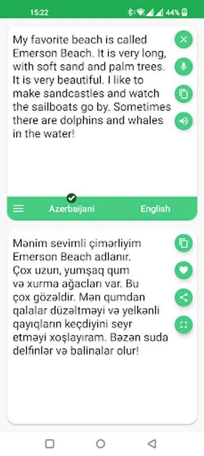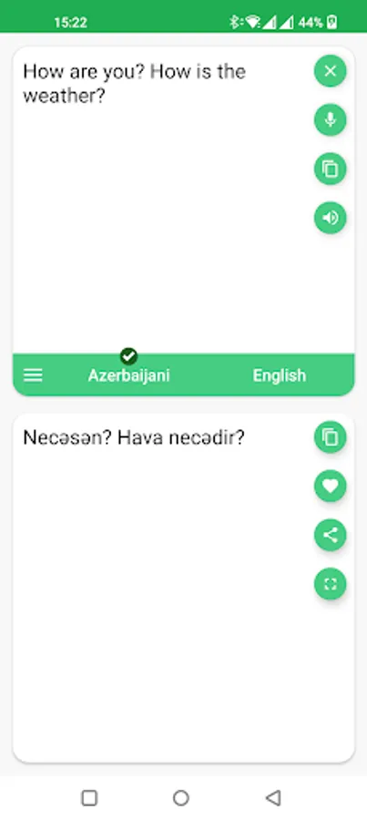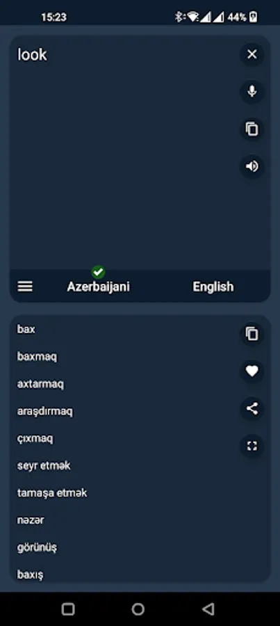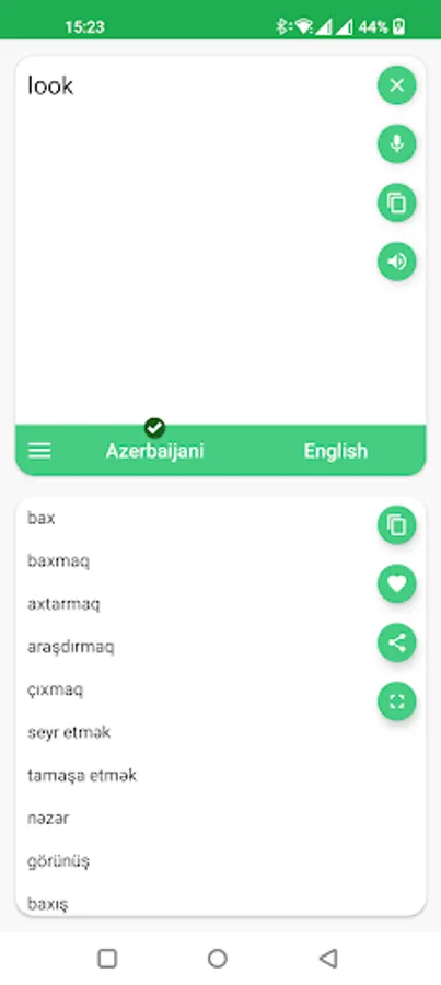With this translator you can easily translate words and text from Azerbaijani to English and from English to Azerbaijani. You are able to translate words and even sentences, in just a split second.