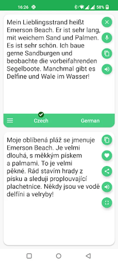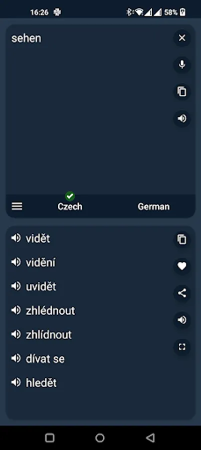 With this translator you can easily translate words and text from Czech to German and from German to Czech. You are able to translate words and even sentences, in just a split second.