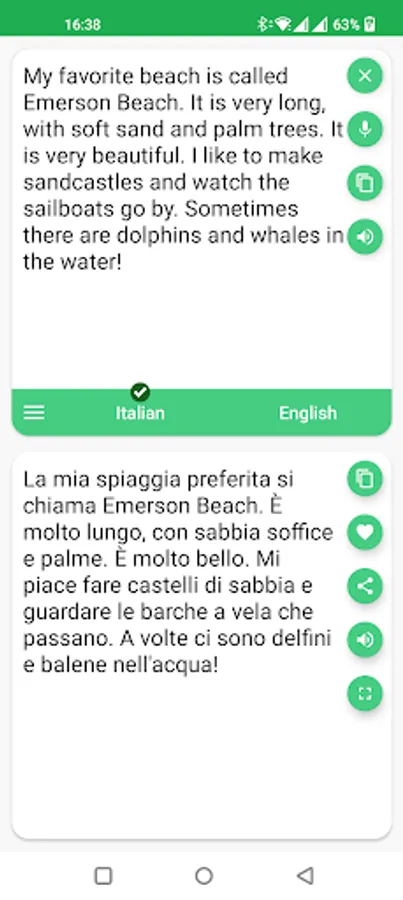 With this translator you can easily translate words and text from Italian to English and from English to Italian. You are able to translate words and even sentences, in just a split second.