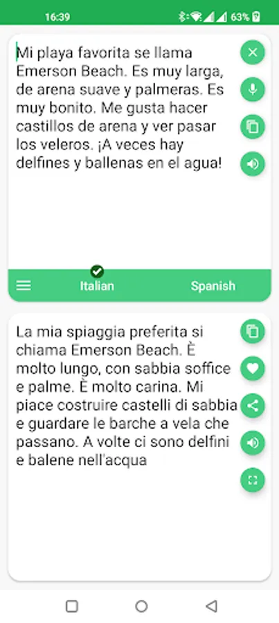 With this translator you can easily translate words and text from Italian to Spanish and from Spanish to Italian. You are able to translate words and even sentences, in just a split second.