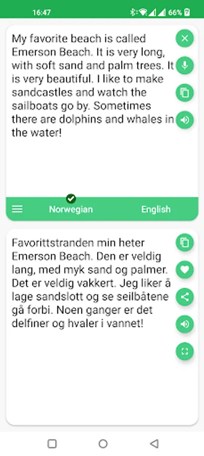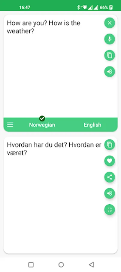 With this translator you can easily translate words and text from Norwegian to English and from English to Norwegian. You are able to translate words and even sentences, in just a split second.