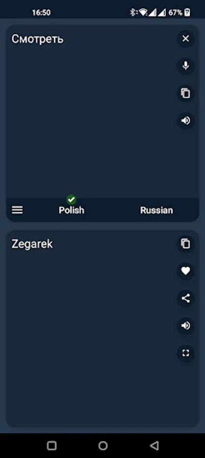With this translator you can easily translate words and text from Polish to Russian and from Russian to Polish. You are able to translate words and even sentences, in just a split second.