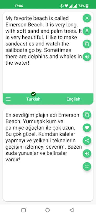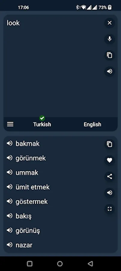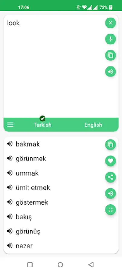 With this translator you can easily translate words and text from Turkish to English and from English to Turkish. You are able to translate words and even sentences, in just a split second.