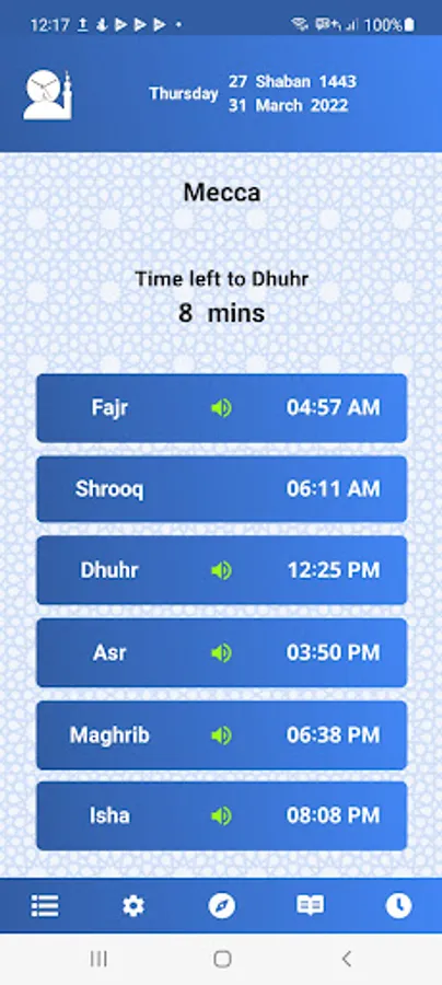- Aladhaan screen can be shown by clicking the app's icon or widget.