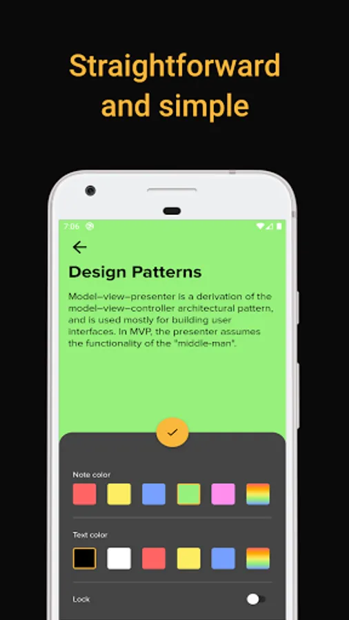 add a password to your note and let you select different kinds of colors for your
