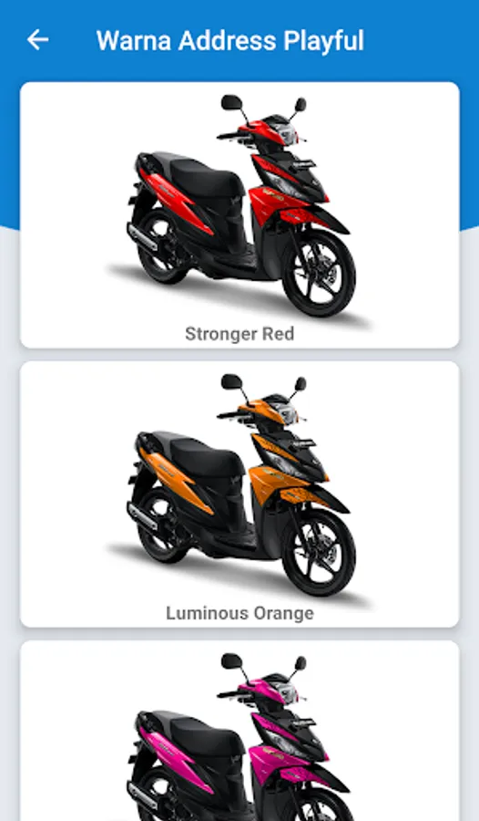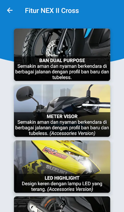 This application has a product catalog of Suzuki motorcycle products sold in Indonesia. Includes a choice of colors, features and specifications in detail for every Suzuki motorcycle that is currently still there at the Suzuki Authorized Dealer.