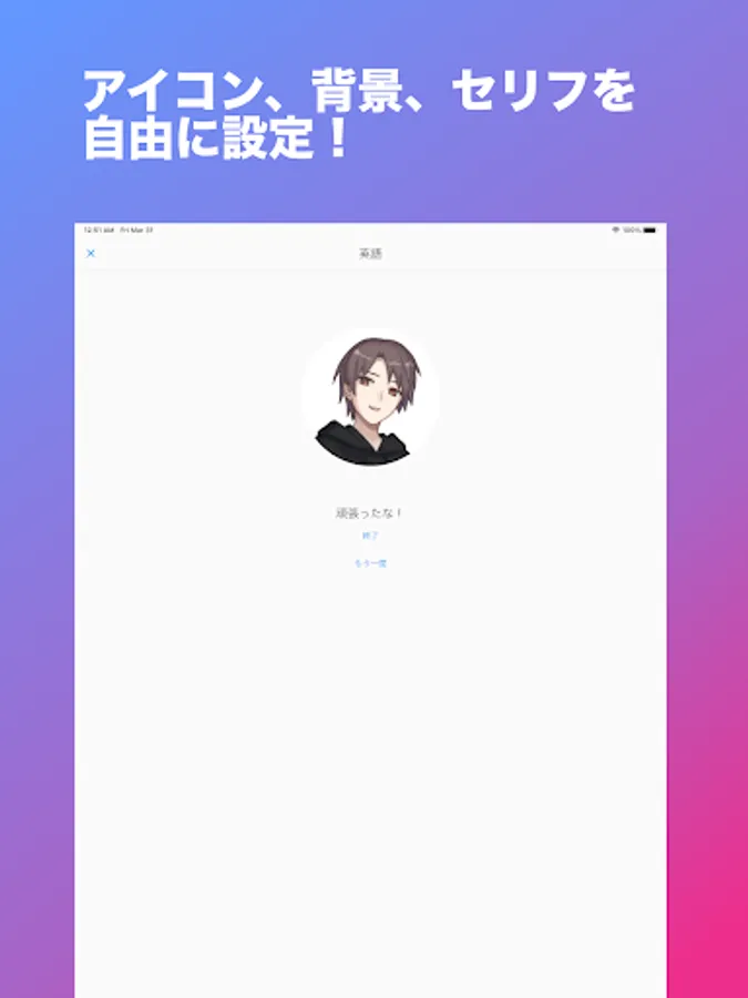 You can set your favorite photo as an icon! And you can make them say your favorite lines, such as "You did your best!" I can do my best if I get support from the endorser!
