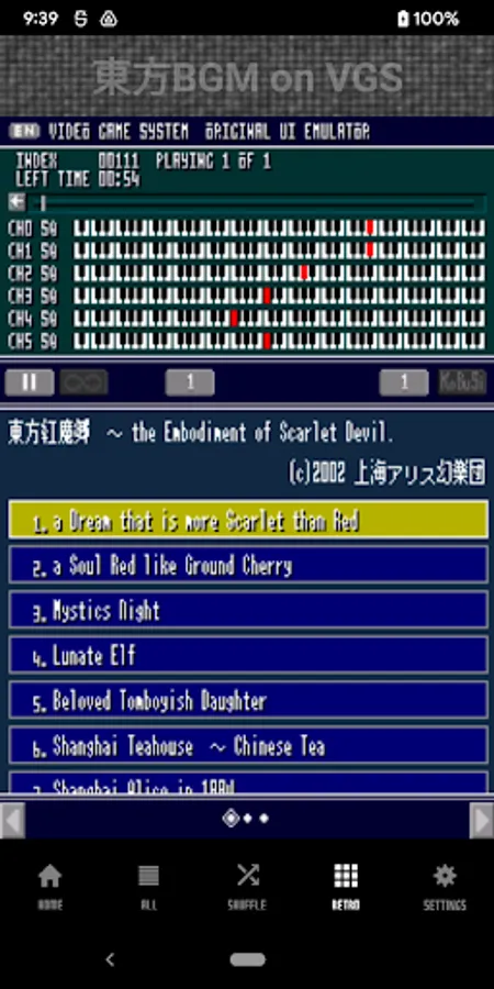 This application is a derivative work of Toho Project that plays Toho Project BGM arranged by me for the VGS Software Synthesizer, and is published in accordance with Touhou Project's derivative work guidelines.