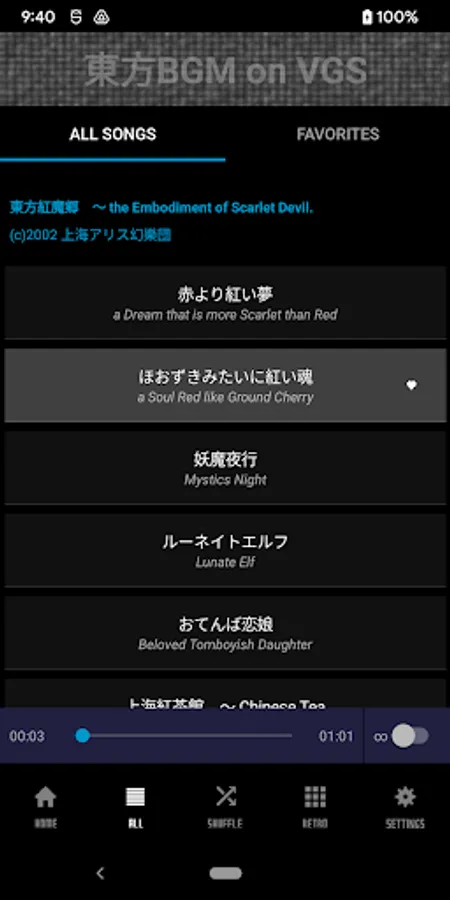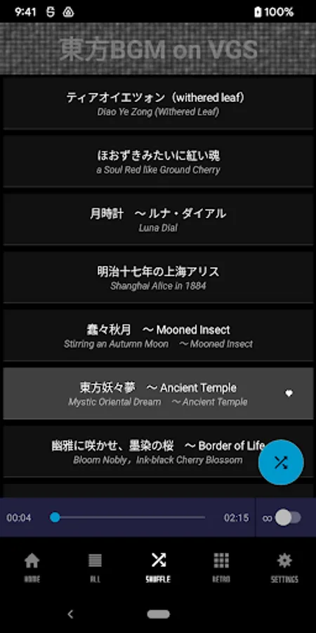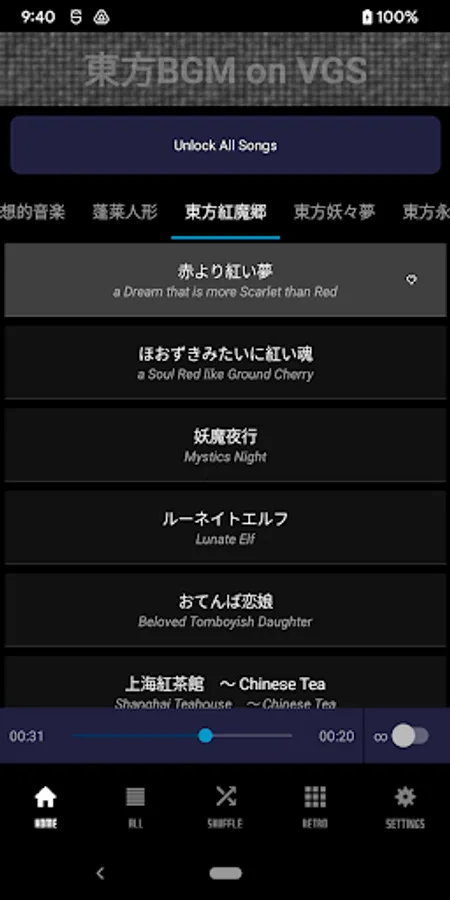 - The SHUFFLE screen allows shuffle playback of all unlocked titles.