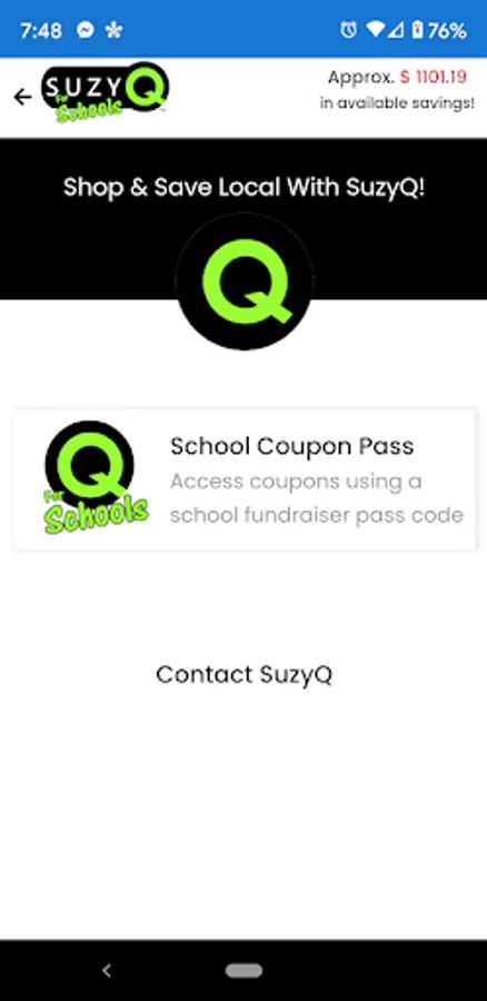 SuzyQ for Schools helps keep more money in your schools and community. Download the App and find all the same discounts and coupons as seen on your discount school card that you purchased.