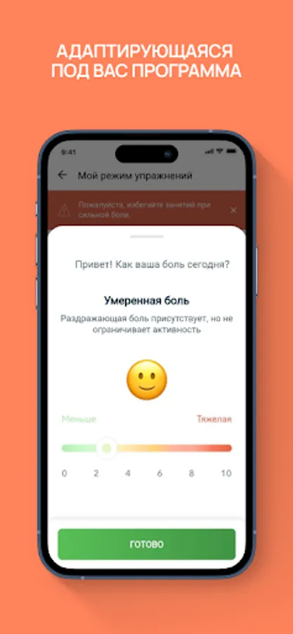 - в приложение внедрен искусственный интеллект, который повышает мотивацию на выполнение упражнений и отслеживает состояние пользователя;